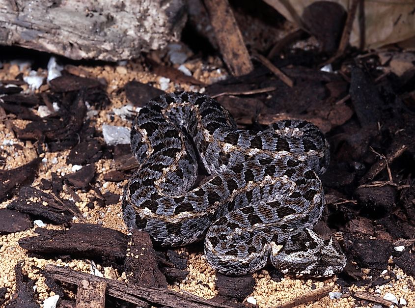 The Kenya horned viper (Bitis worthingtoni) is endemic to the high-altitude, central Rift Valley of Kenya. Its home range encompasses rocky areas, grasslands, and savannas. It inhabits these regions at elevations of 4,900 to 8,200 feet.