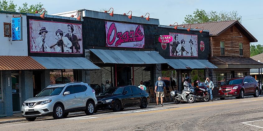 Jasper feels like it exists along a single line, centered along Highway 7 with a courthouse, a handful of shops, and a few places to eat, all within a short stretch. From the courthouse, you can see most of the storefronts and the full stretch of the main road without needing to move. Similarly, at Ozark Cafe, you can sit by the window or outside, have a full meal, and watch the same small stretch of road where traffic moves slowly and nothing changes very quickly. Just outside of town, The Buffalo National River is a peaceful area, with access points that lead down to gravel bars and shallow water. Nearby overlooks like Whitaker Point can be reached via narrow roads that naturally limit the number of people who can pass through at once. Within town, there isn’t much visual clutter either.