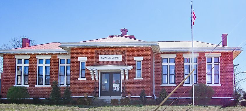 Located in downtown Houston, Mississippi, the Houston Carnegie Library opened in 1909 as the first Carnegie library in the state and the second public library in Mississippi. Funded by a $6,000 grant from philanthropist Andrew Carnegie, the building was constructed after local school superintendent L. B. Reid petitioned Carnegie for support, with the town agreeing to maintain the facility. The Houston Carnegie Library was added to the National Register of Historic Places in 1978 in recognition of its historical and architectural significance.