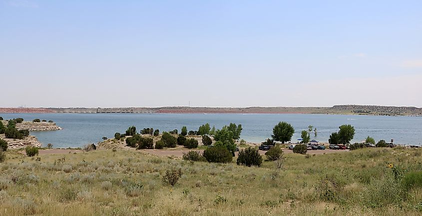 At 4,800 feet elevation, Lake Pueblo State Park is just west of Pueblo, featuring a reservoir with 60 miles of shoreline. Limestone buttes, high desert terrain, and the Arkansas River canyon form the landscape below the dam. The park's dry, rocky landscape and abundant rodent populations make it a productive hunting ground for prairie rattlesnakes.