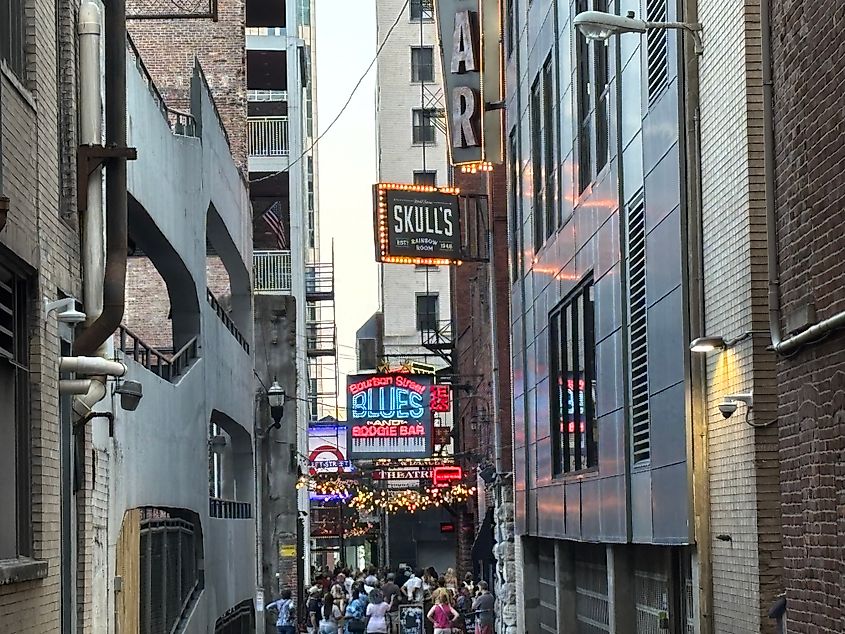 By this time, 13 publishers and 10 printers were housed in this area, including Tennessee's two largest newspapers, The Tennessean and the Nashville Banner. Hotels, restaurants, saloons, and eventually speakeasies would establish their presence here, transforming the alley into what it remains today: a funky and vibrant nightlife hub. Many performers set up shop here throughout the years, including Hank Williams, Waylon Jennings, and even Jimi Hendrix. Popular venues include Bourbon Street Blues and Boogie Bar, Skull's Rainbow Room, and Fleet Street Pub.