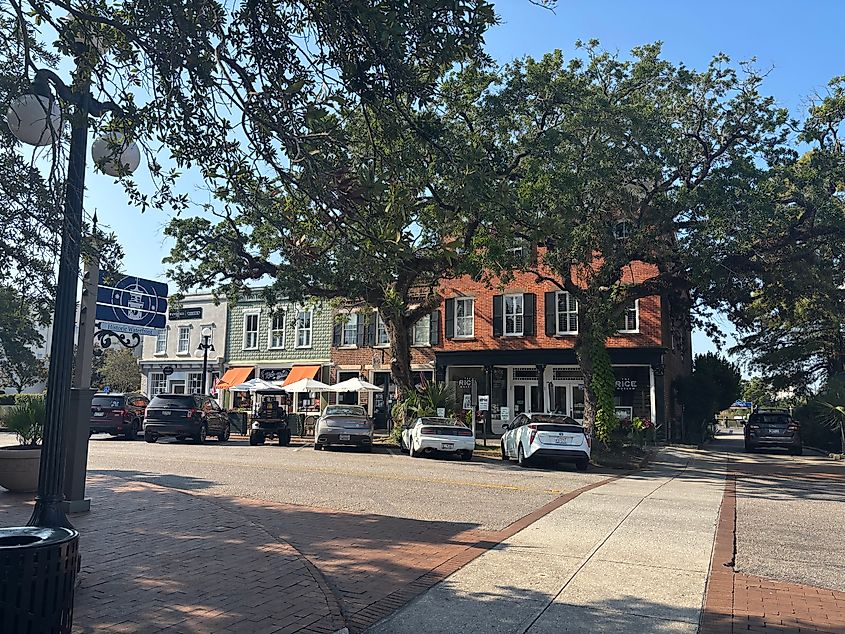 Georgetown does not have any chain retailers, but it has a host of local boutiques and clothiers, which add to its distinct character. Front Street includes shops like Georgie Girl and Whimsy Warehouse, interspersed between unique museums and the iconic The George Hotel, each offering views of the slow-moving Sampit River as a scenic backdrop.