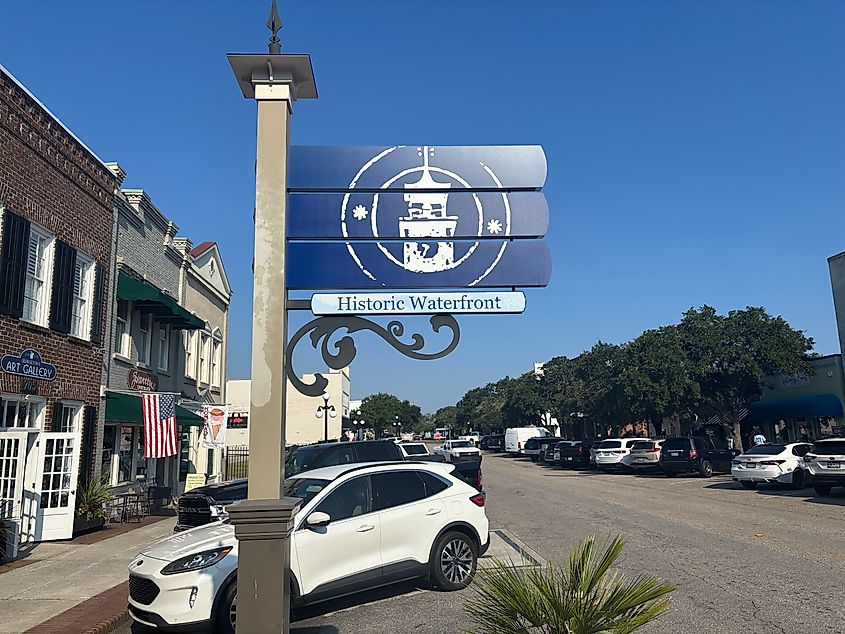 The Sampit River runs close to Front Street, Georgetown's main strip, adding natural beauty to the compact, charming downtown. It is also a significant part of Georgetown's past, serving as a hub for commercial trade. The town was laid out in 1729, when businesses and homes were erected on the land side of Front Street. By the mid-18th century, property owners realized the capital that could be earned by selling riverfront lots, and Front Street became a hub for new stores specializing in wagons, furniture, and other necessities of the era.