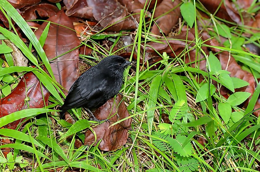 The Cocos Island finch (Pinaroloxias inornata) lives exclusively on Cocos Island in the eastern Pacific Ocean. It technically isn't a true finch, and instead belongs to the tanager family. Its entire population exists on this isolated island of Costa Rica, creating a closed ecological system with limited external influence. One of the island's three native land bird species, it fills multiple feeding roles within the forest and coastal habitats.