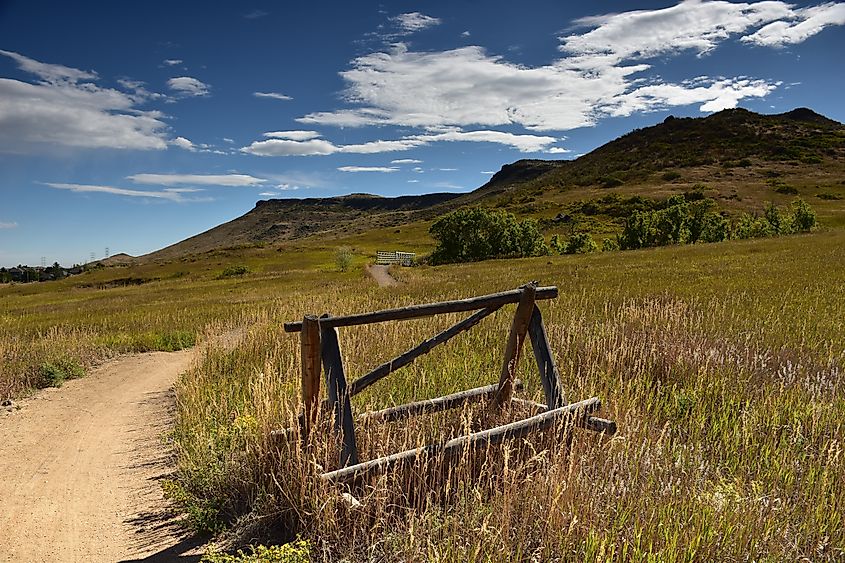 North Table Mountain Park is a Jefferson County Open Space property featuring a flat topped basalt mesa rising 500 feet above the surrounding plains. Its summit prairie, steep slopes, and small ponds fed by seasonal springs create an ecosystem that suits prairie rattlesnakes well. Prairie rattlesnake populations are dense enough here that researchers have conducted formal movement studies around the mesa.