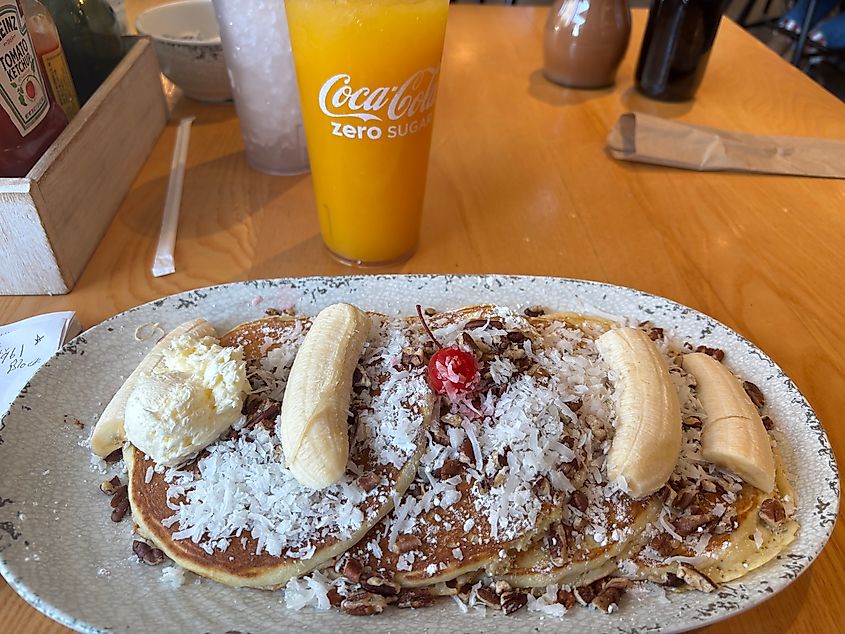 There are two locations, Downtown and Hillsboro Village. I dined at the downtown location and feasted on Caribbean Cakes—four large pancakes covered in pecans, sliced bananas, coconut, and adorned with a cherry. Trust me, I needed the energy for the trek ahead, as well as for visiting the Country Music Hall of Fame and the historic RCA Studio B. I also enjoyed breakfast at the quaint Midtown Cafe, a local favorite.